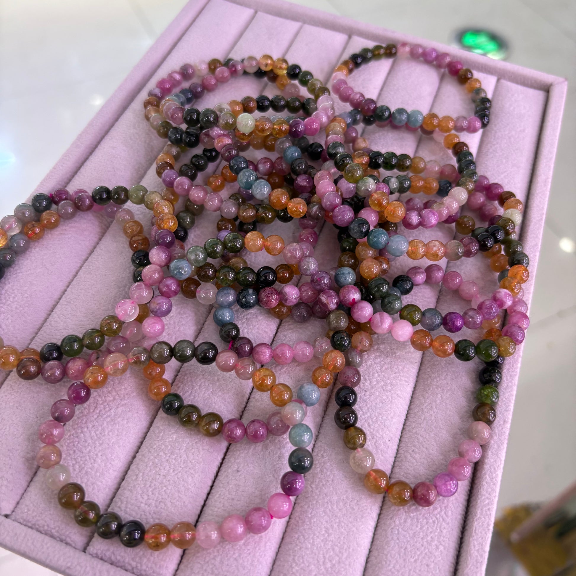 Natural Colorful Tourmaline Elastic Bracelet For Healing 6mm 12g