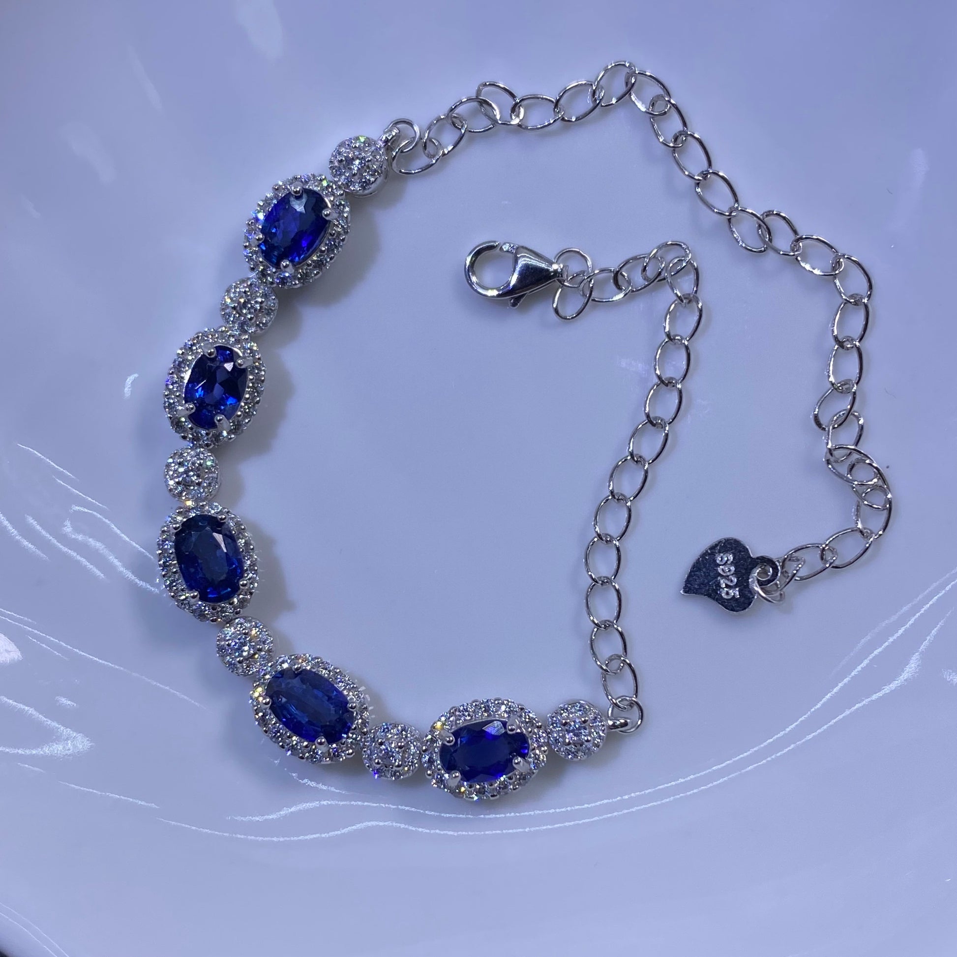 Natural Royal Blue Sapphire S925 Sterling Silver Classic 18K White Gold Plated Bracelet