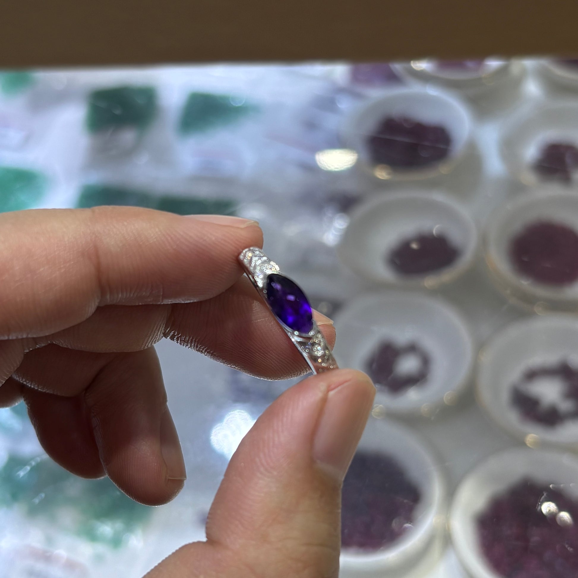 Custom-made Natural Amethyst Sterling Silver Gold Plated Adjustable Ring