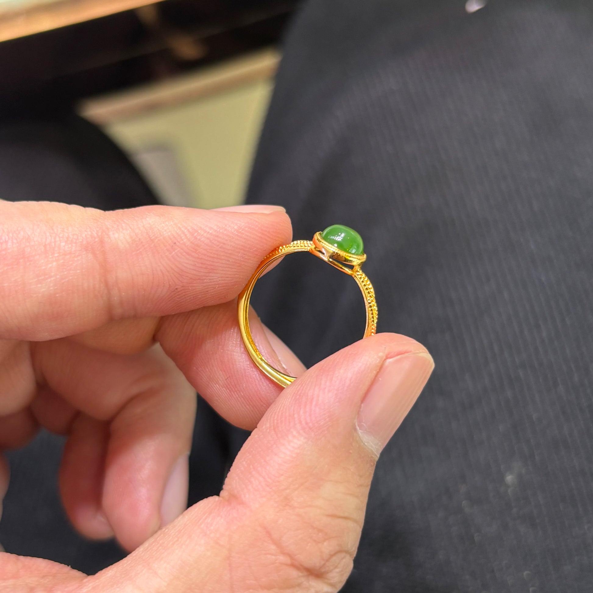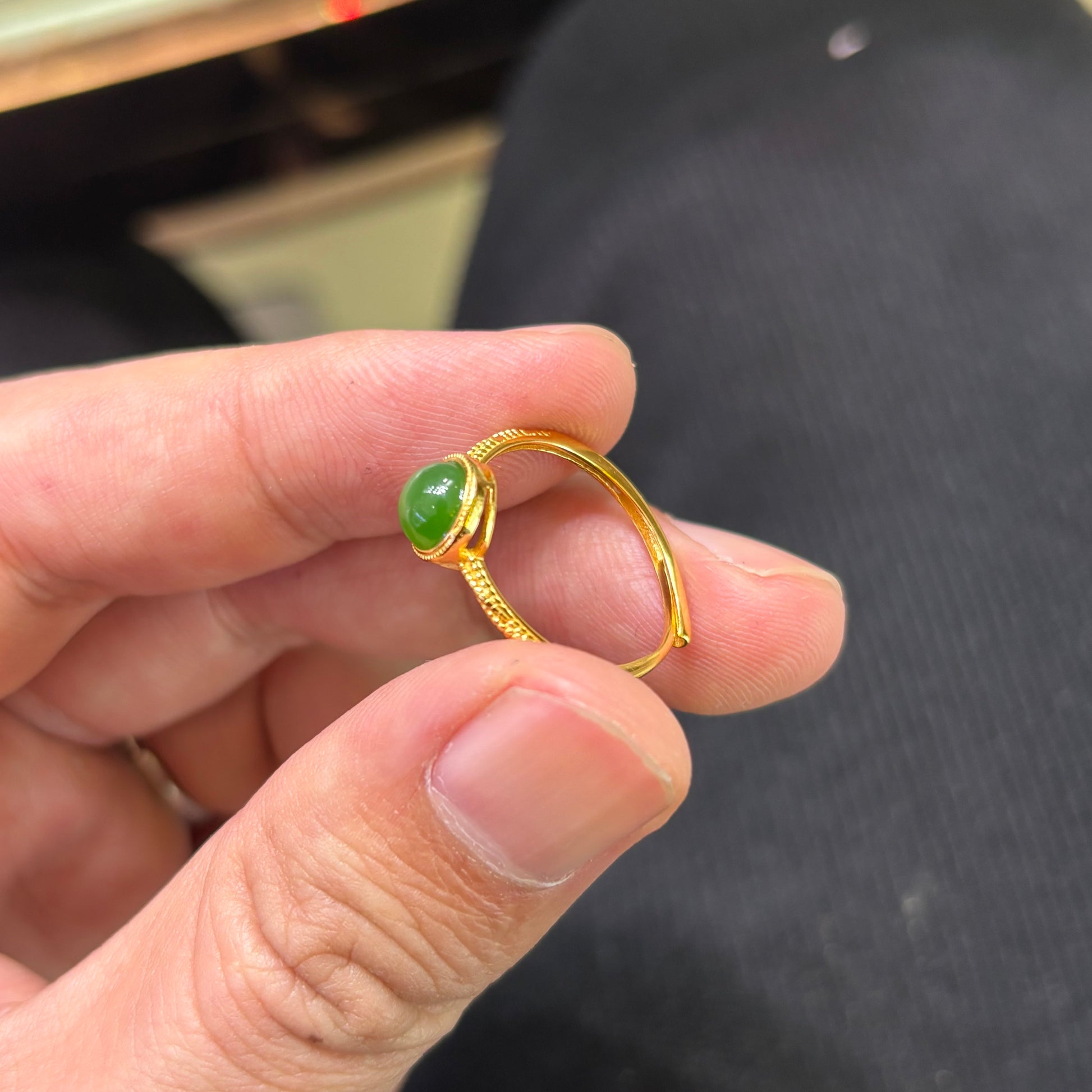 Custom-made Natural Hetian Jade Sterling Silver Gold Plated Adjustable Ring