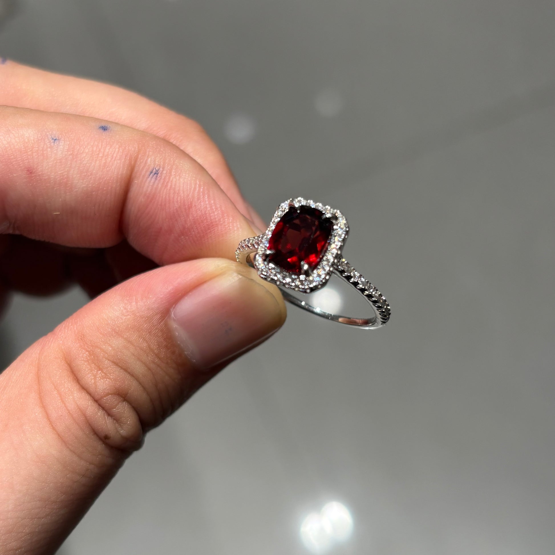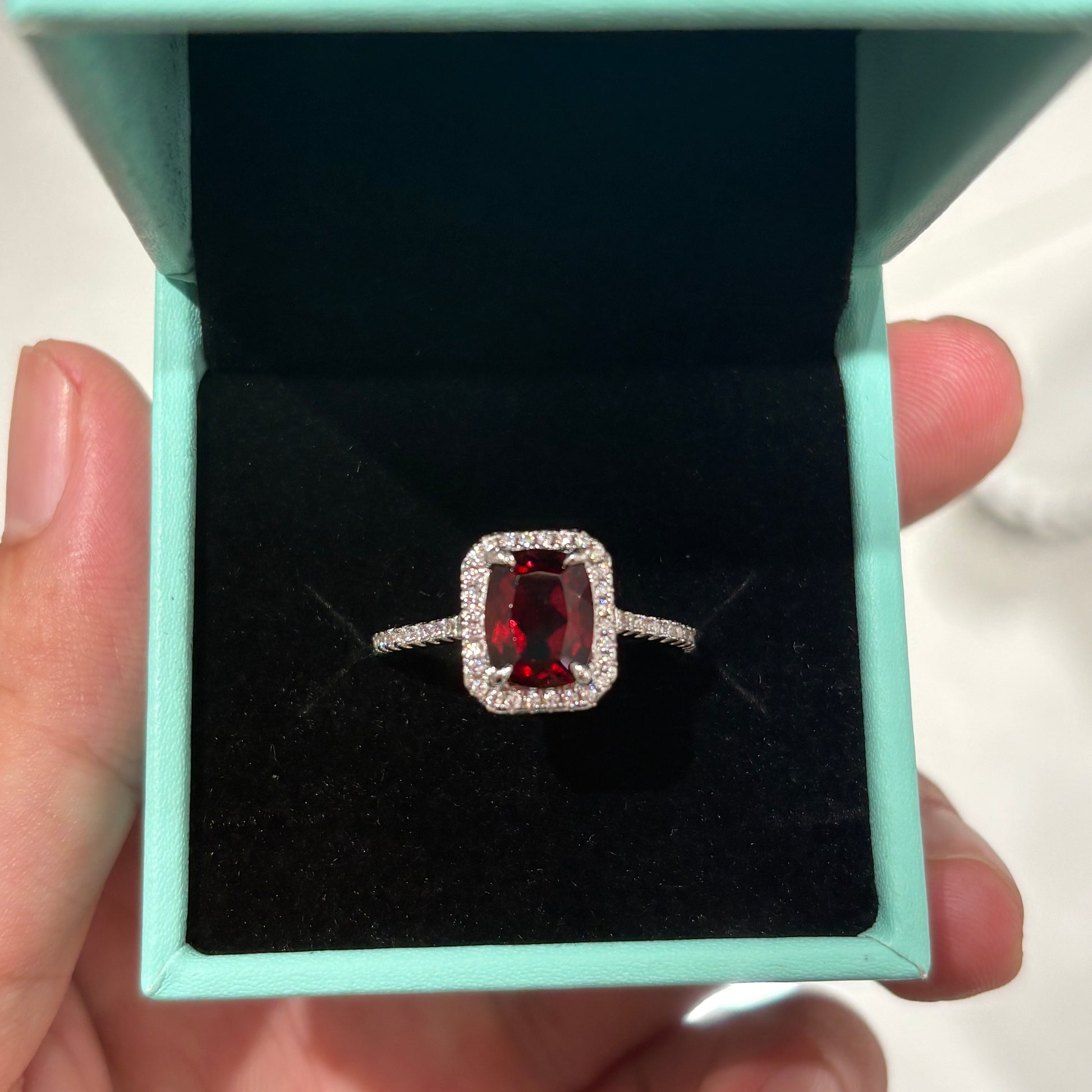2Ct Princess Cut Pigeon Blood Garnet S925 Sterling Silver Classic 18K White Gold Plated Ring