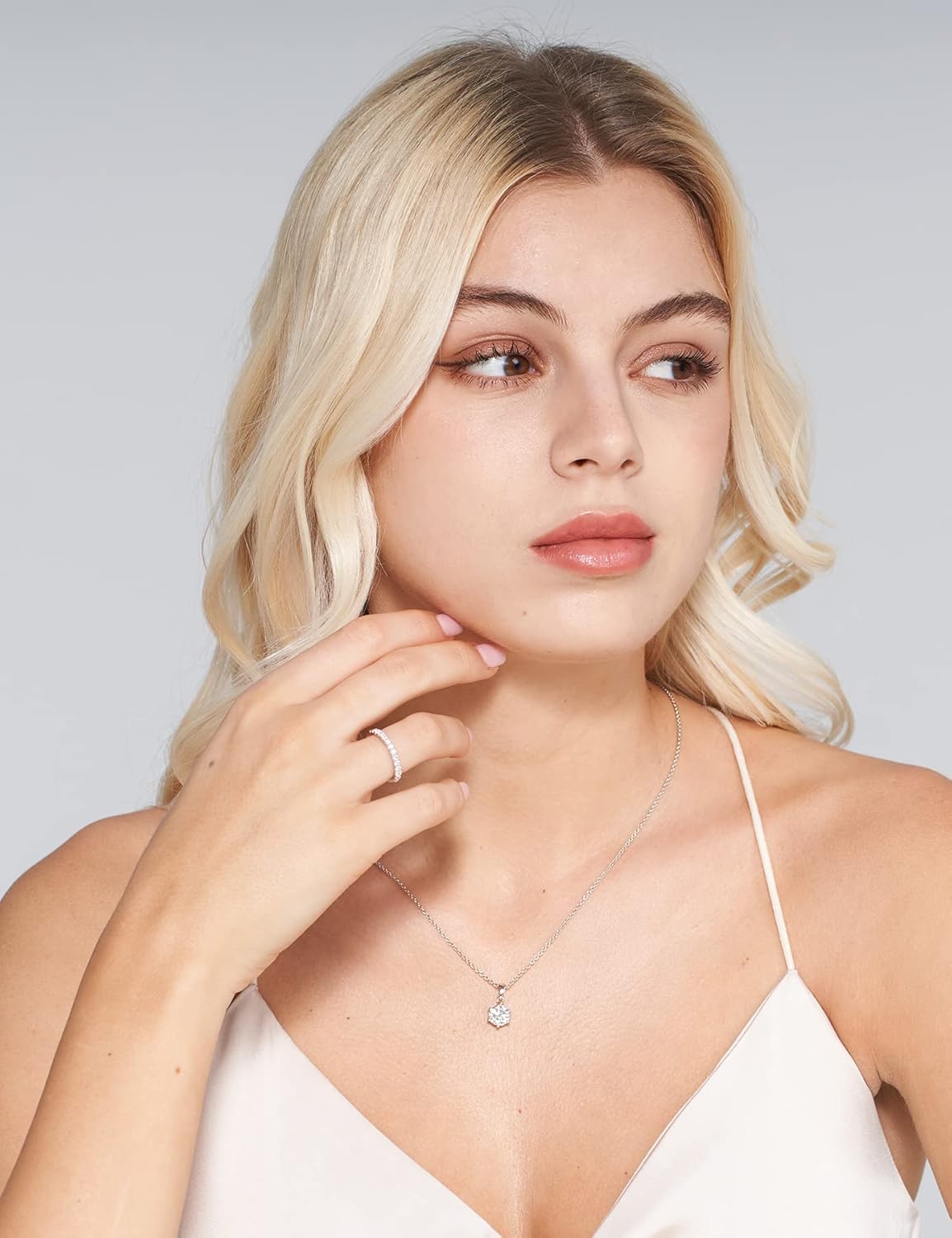 Moissanite Wedding Band Wedding Rings for Women 925 Sterling Silver Rings with 18K White Gold Plated Eternity Stackable Engagement Ring Anniversary Band Size 4-10