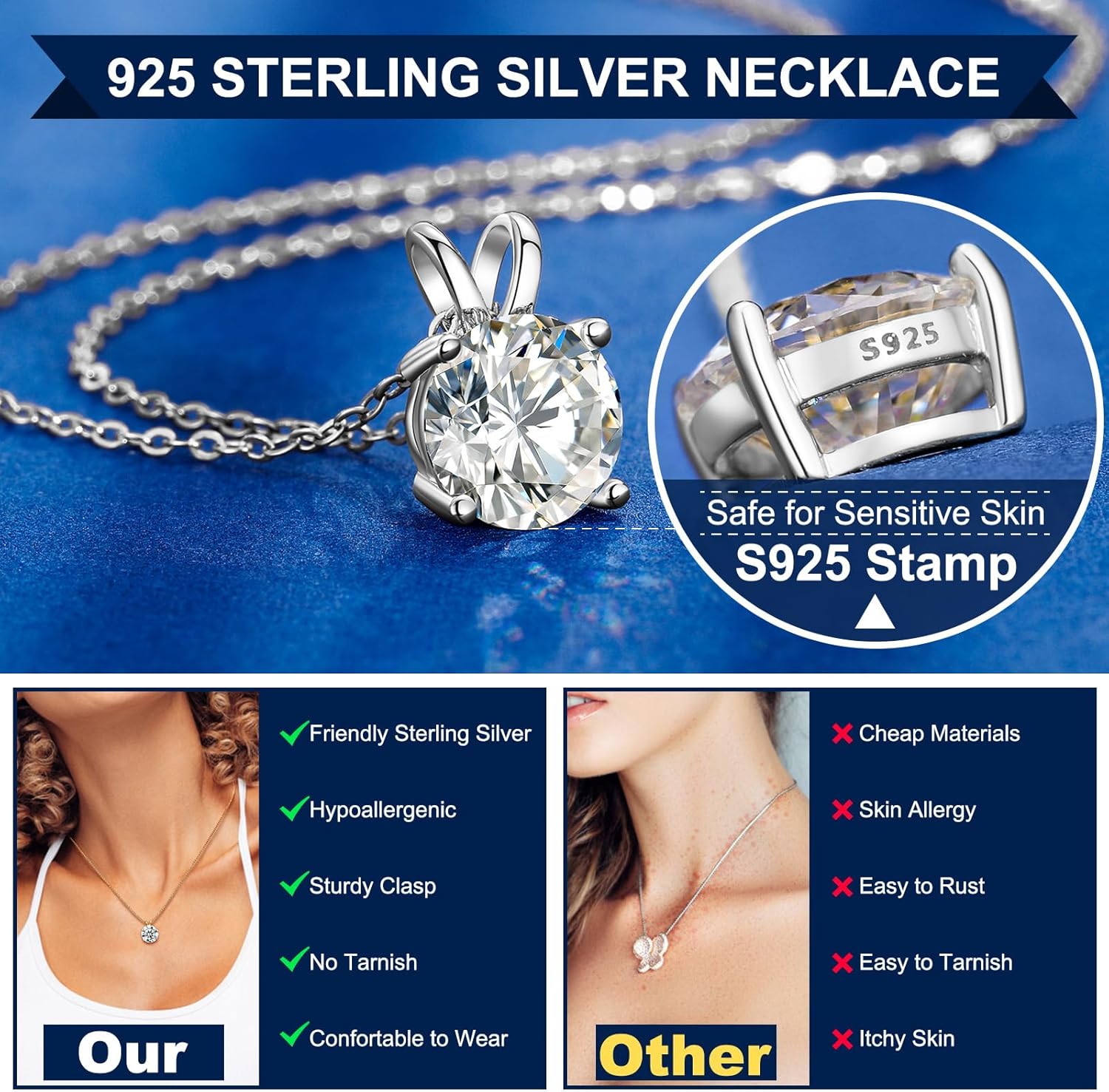 Moissanite Necklace for Women Round Cut Moissanite Pendant 18k Gold Plated Sterling Silver Necklace