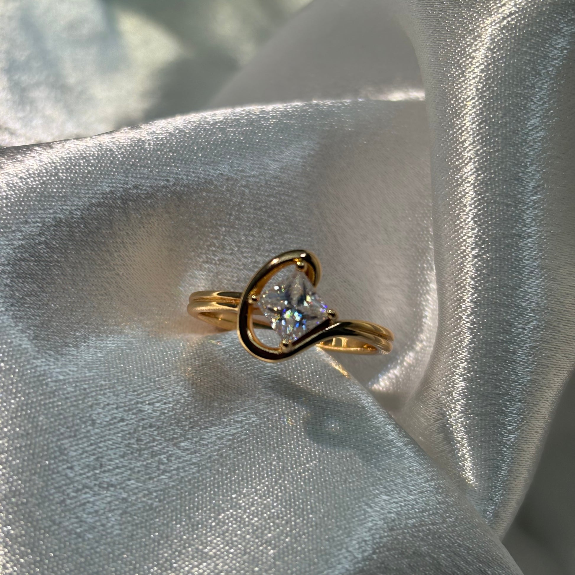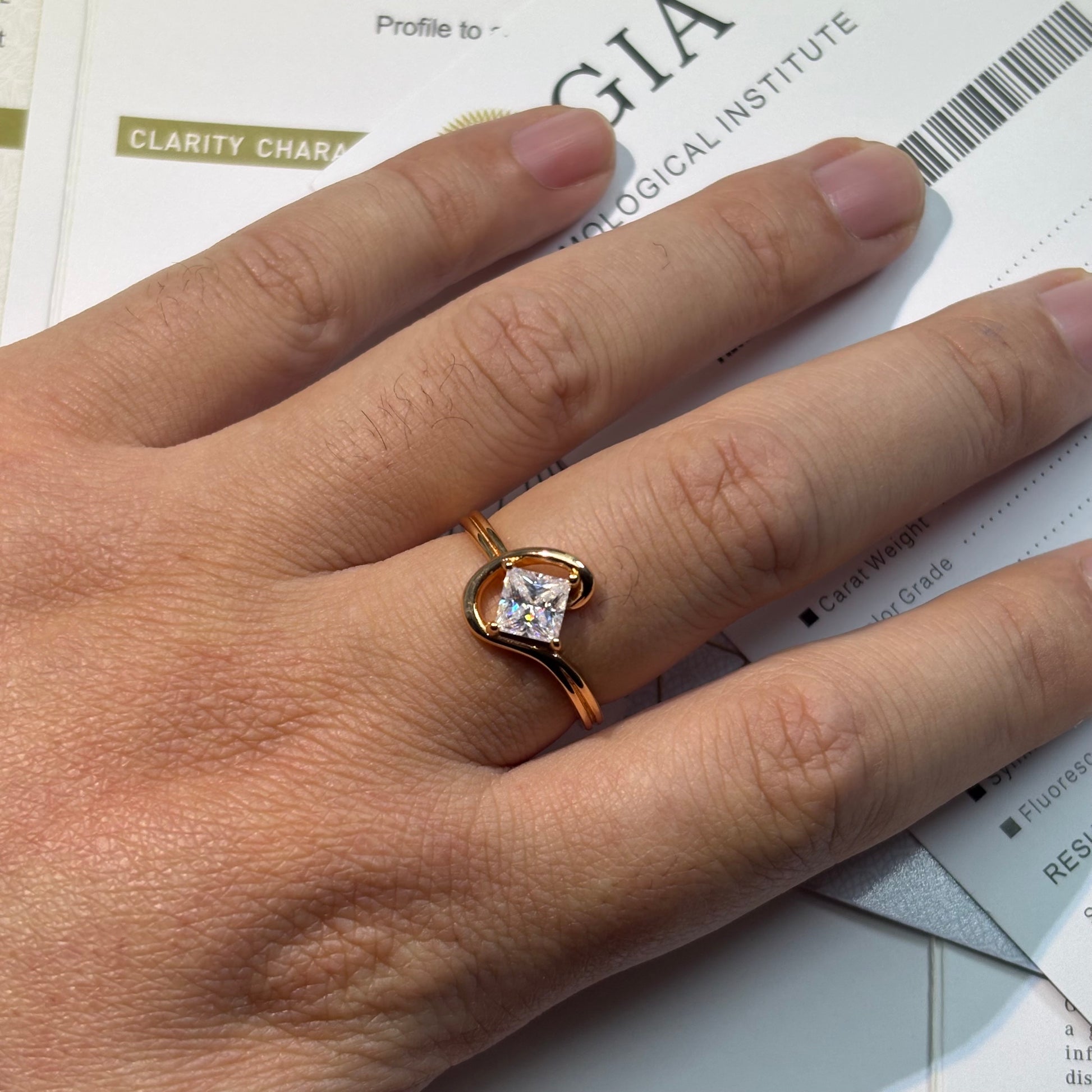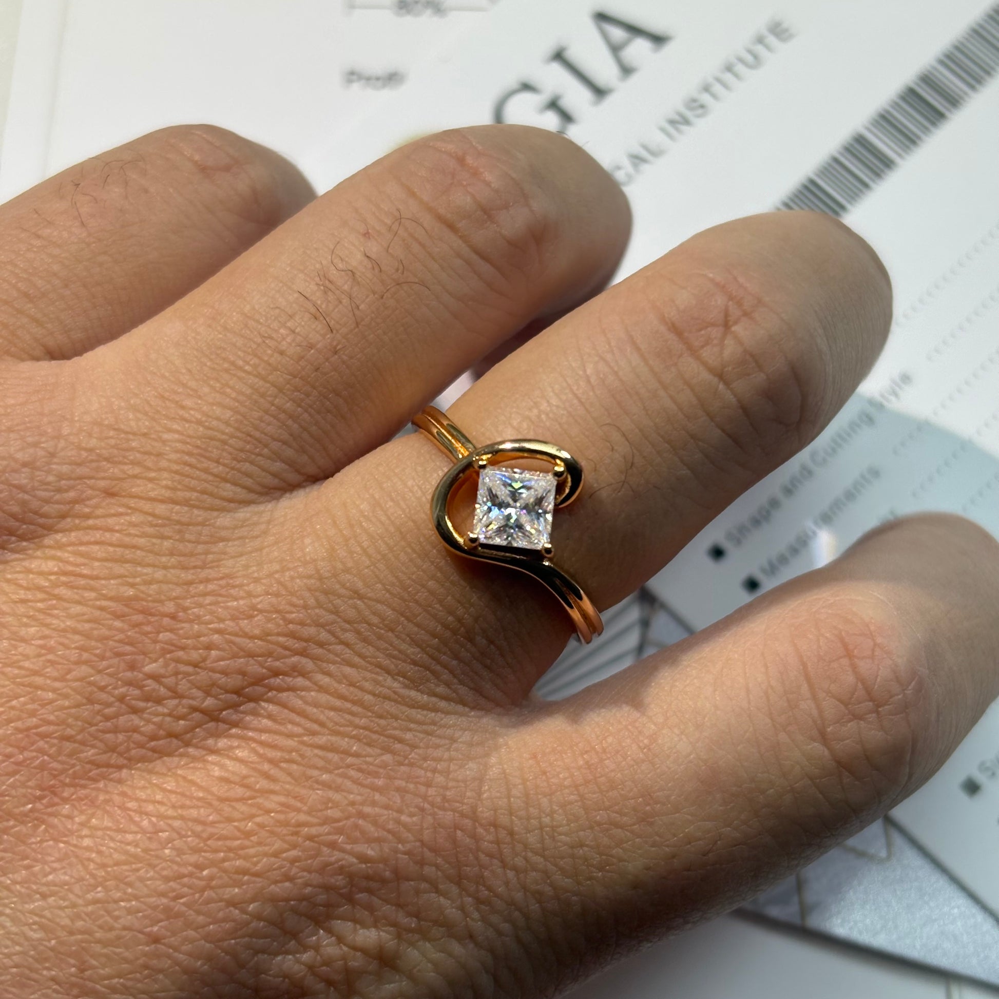 1ct Princess Cut Moissanite Diamond S925 Sterling Silver Classic 18K Gold Plated Ring